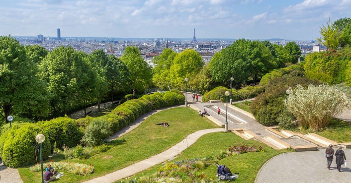 The park climbs steeply, offering a rugged ascent through wildflowers, winding steps, and open lawns. At the top, Paris spreads before you. You can trace rooftops, pick out landmarks, and feel like you’ve earned the moment. No lines. No pickpockets. Just space.
